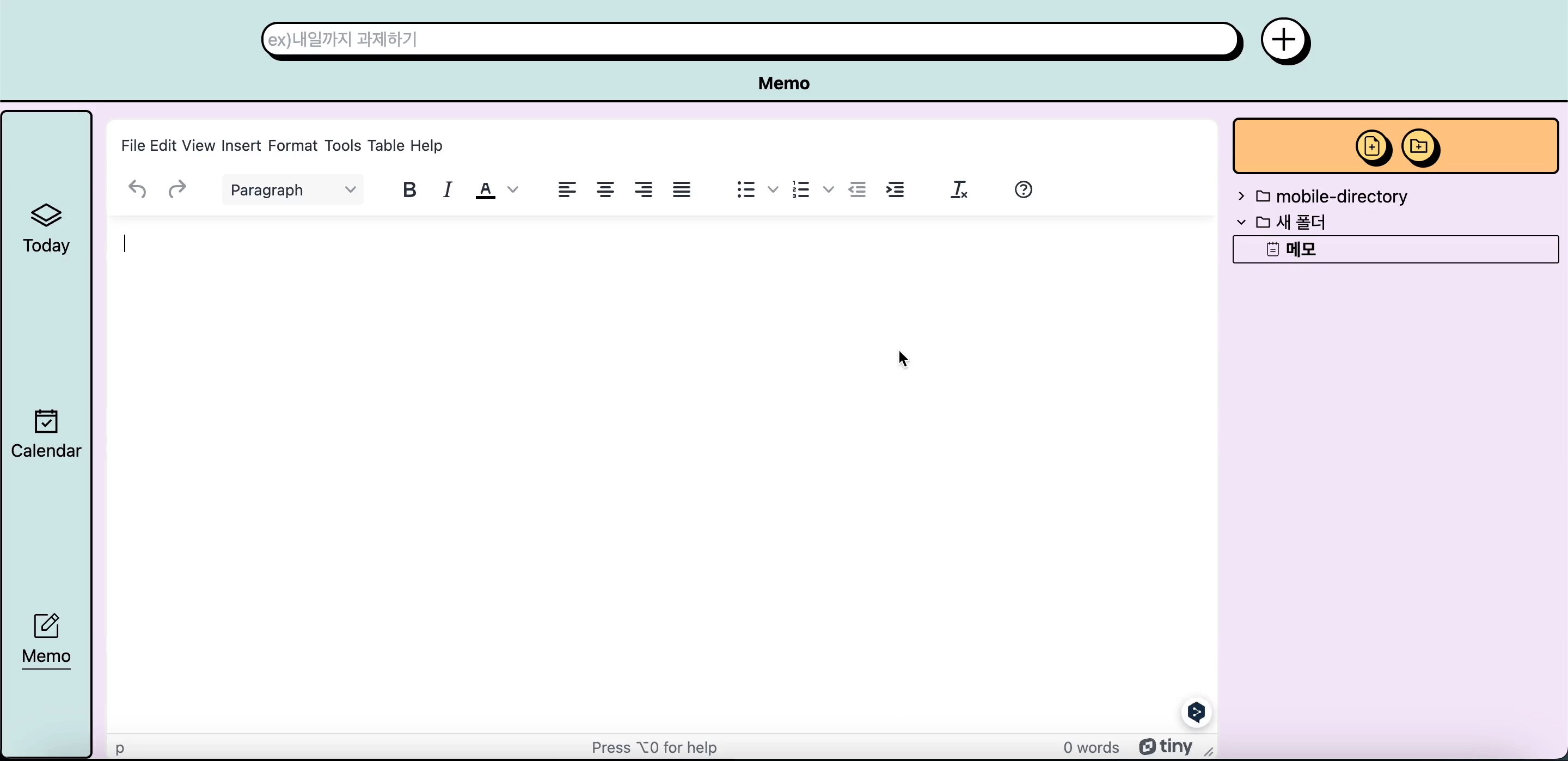 애플리케이션은 크게 Today, Calendar, Memo 페이지로 구성되어있습니다.