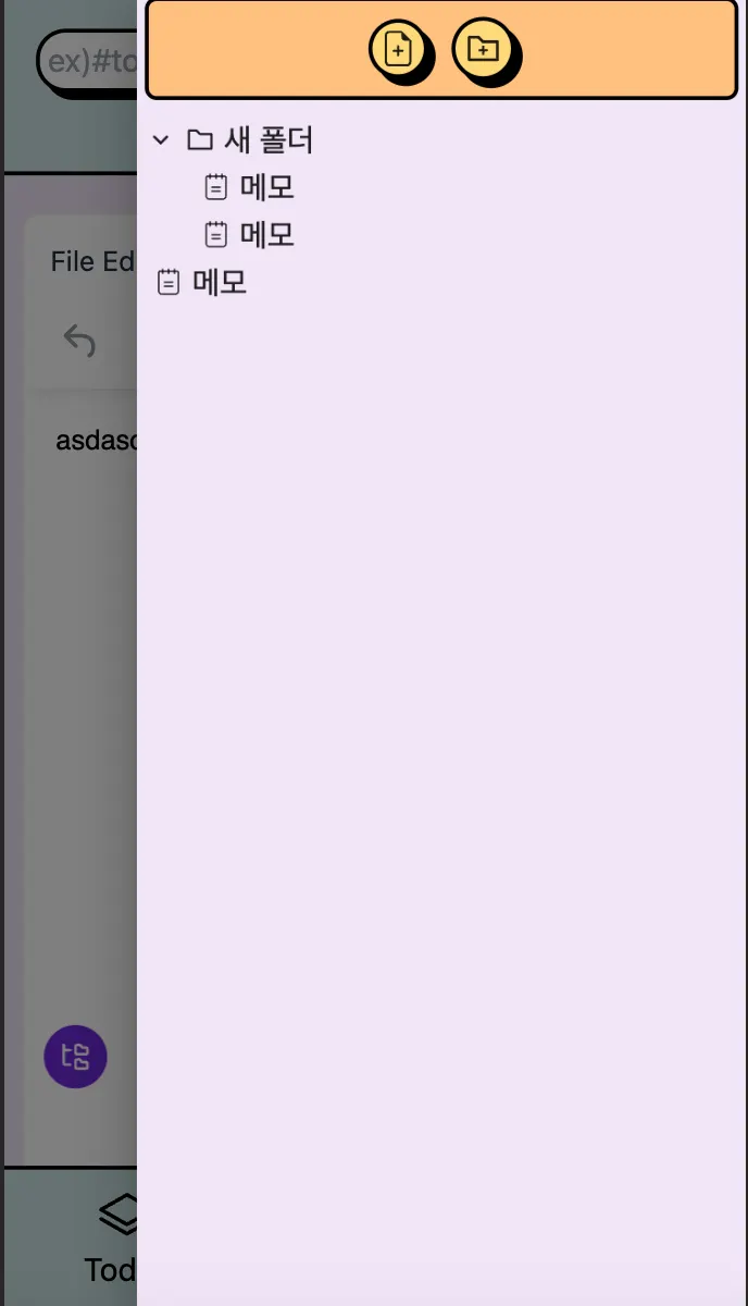 반응형 레이아웃을 위해(모바일) 메모 페이지에서 파일-디렉토리 구조를 보여주는 UI를 Drawer 안에 넣고, 사용자가 옆에서부터 밀어서 여는 제스쳐를 취할 때 해당 UI를 보여주는 요소입니다.