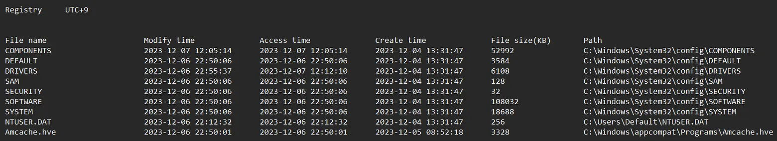 대상 아티팩트: 레지스트리 hive 파일, 이벤트 로그 파일, 휴지통 내 삭제된 파일