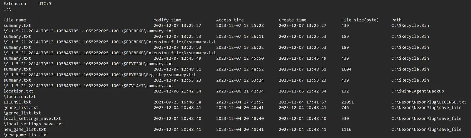 유은선 | 팀원 | 아티팩트 수집 메커니즘 분석 및 개발 (Recycle Bin, Extension File)
