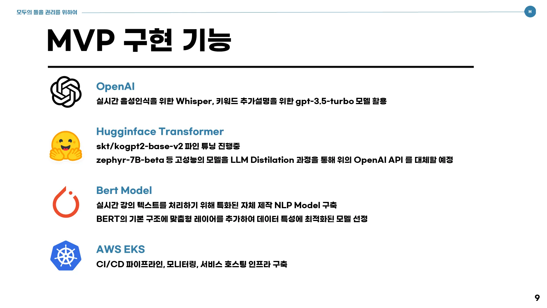 프로젝트는 한국어 강의 자료를 효과적으로 요약하기 위해 다양한 BERT 변형 모델을 실험했습니다. 데이터는 전처리 후 다양한 높이와 각도에서 실험되었고, BERT, RoBERTa, DistilBERT 모델의 초기 테스트를 거쳐 각각의 장단점을 분석했습니다. 추가 레이어의 적용이 복잡한 문장과 긴 텍스트의 요약에 긍정적인 영향을 미치는 것을 ROUGE-L 점수를 통해 확인했습니다.