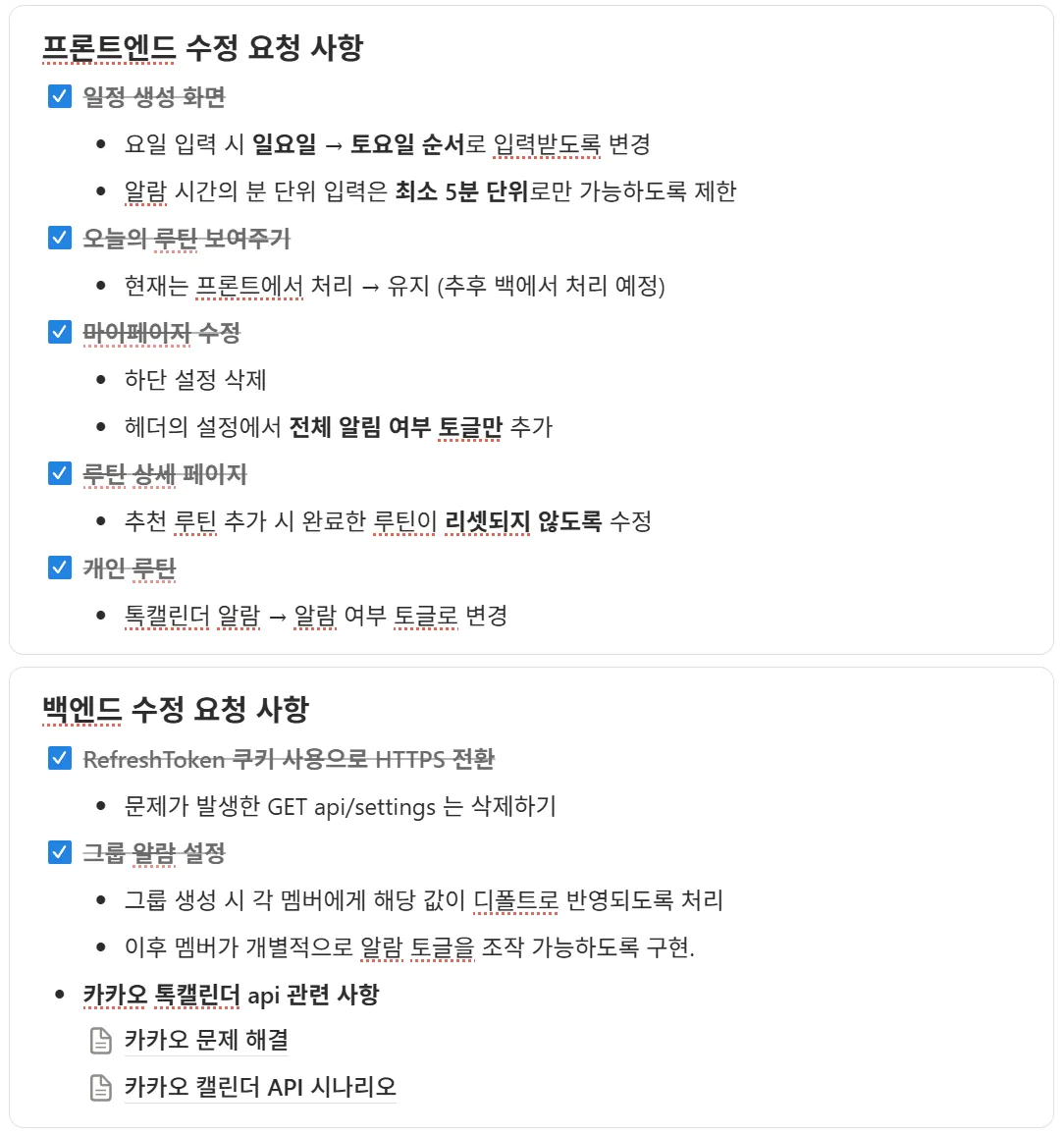이 외에 각자 이슈 사항들을 공유하고 회의 시간에 다같이 확인하여 각 담당별로 정리해여 문제를 해결해나갔습니다.