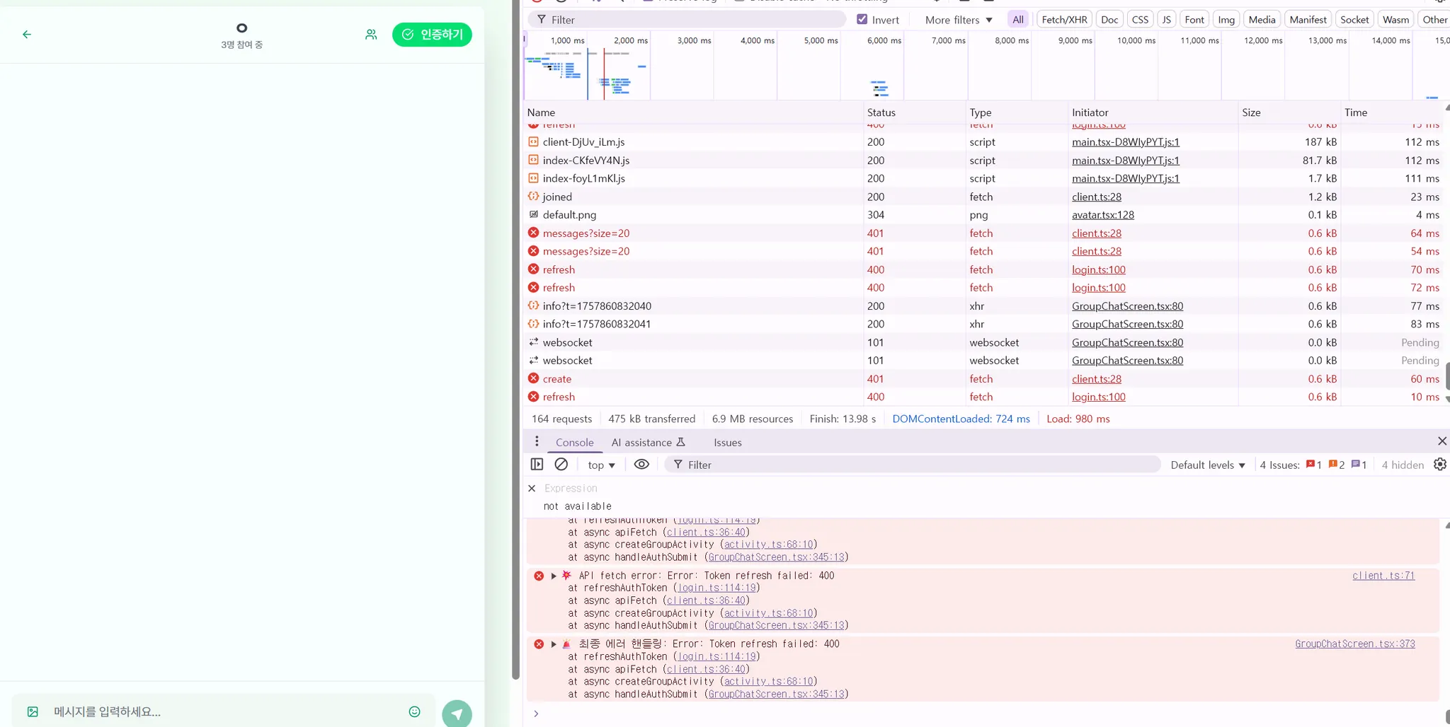 프론트엔드 담당자의 계정으로 접근할 시 일부 api 사용시 토큰이 유효함에도 불구하고 refreshToken 에러 발생