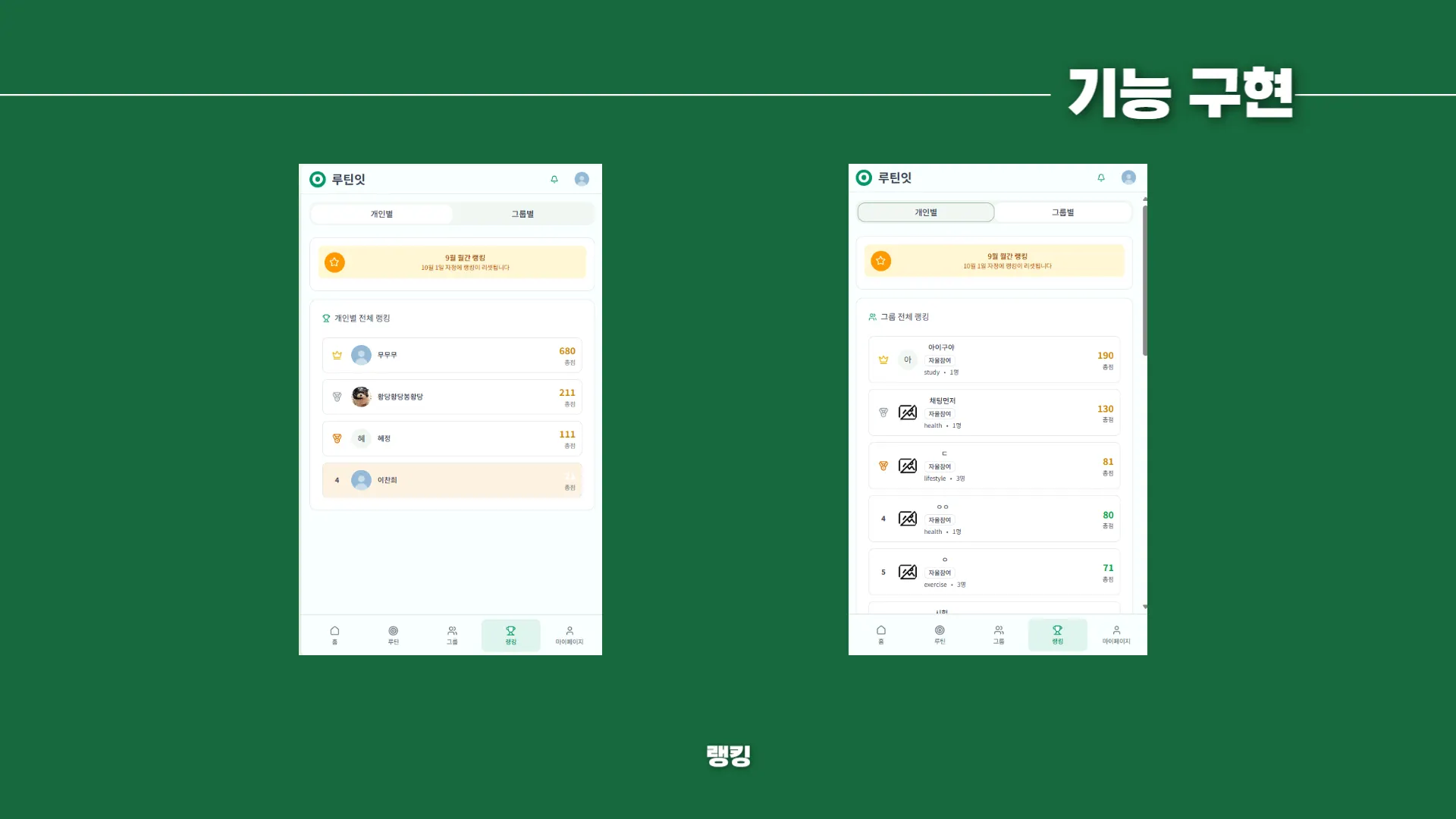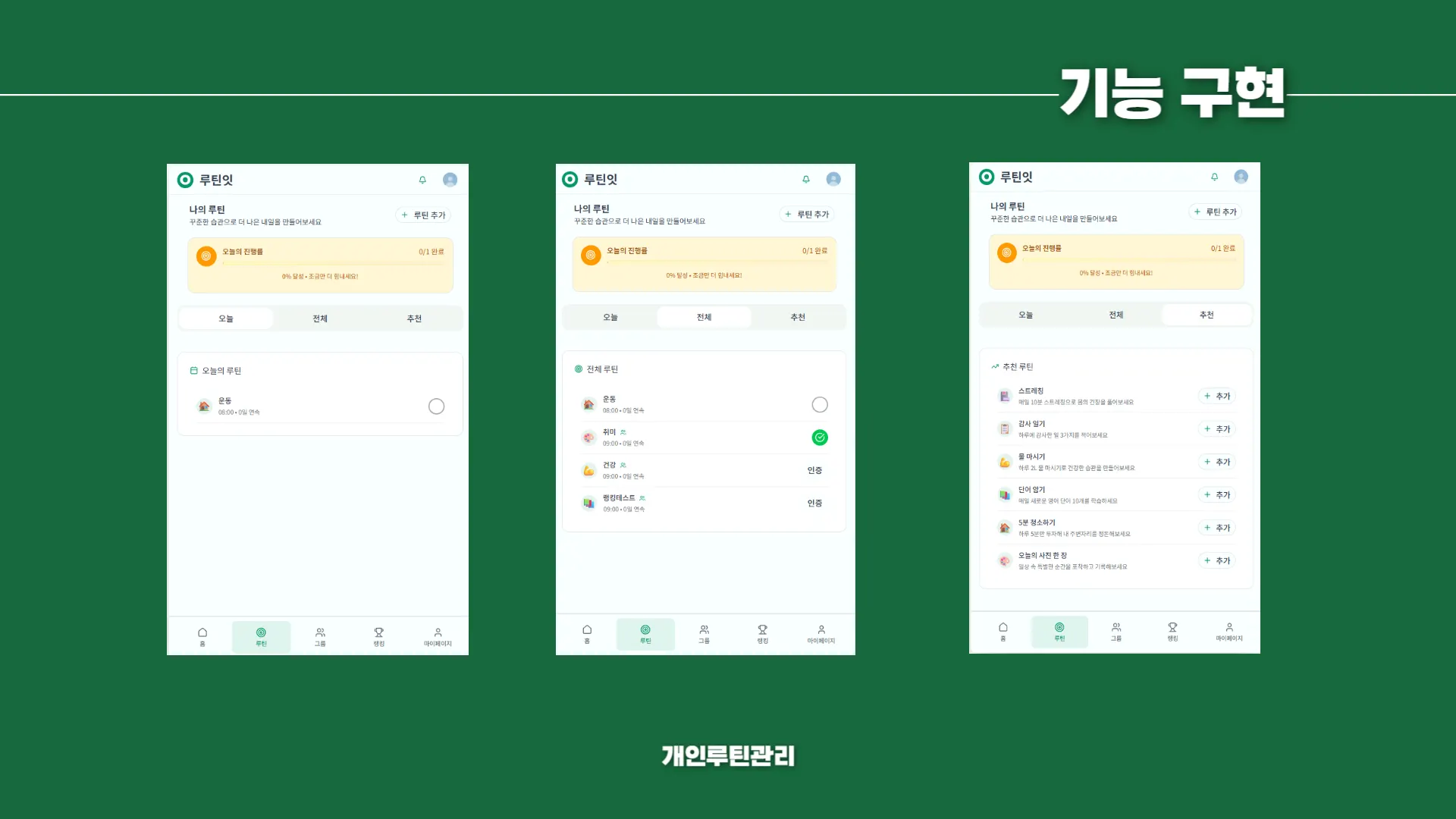 개인 중심의 루틴 관리 | 그룹 기반 루틴 실천 |