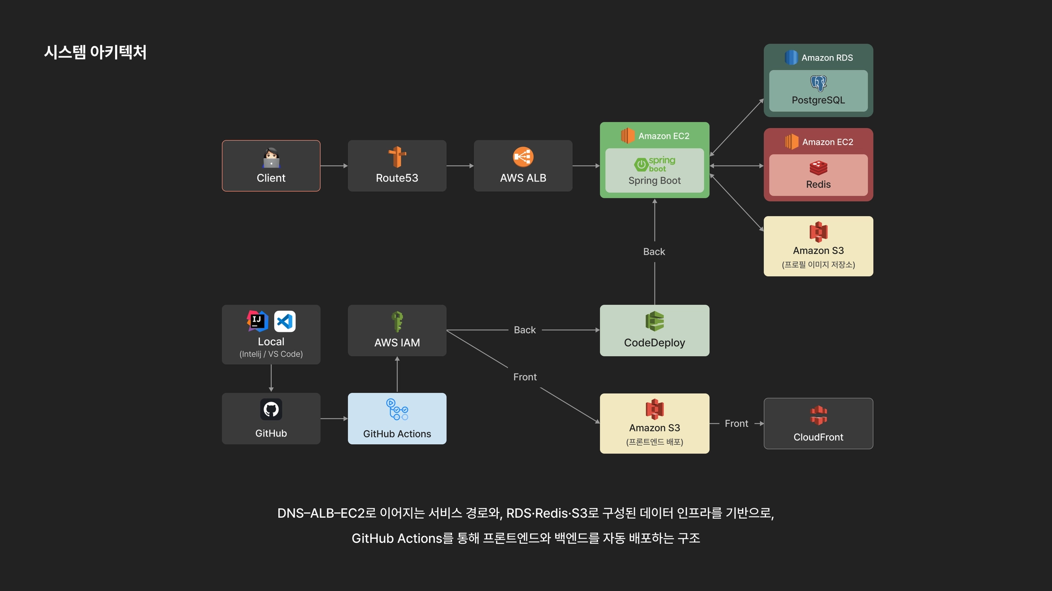 CI/CD | GitHub Actions + OIDC | 인증키 없이 IAM Role을 이용해 자동배포 |
