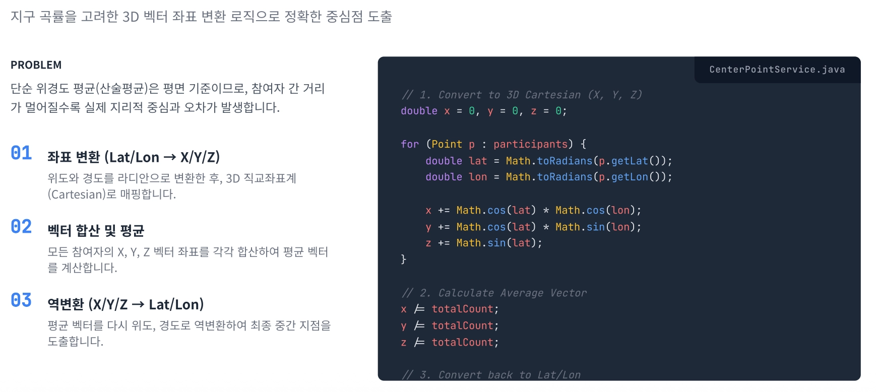 3D 중심점 알고리즘(지구 곡률 반영)