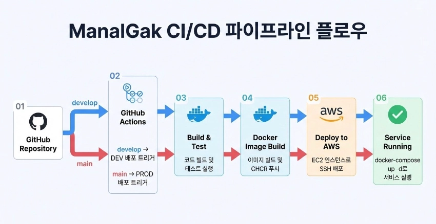 GitHub Actions: develop/main 브랜치 기반 자동 빌드/배포