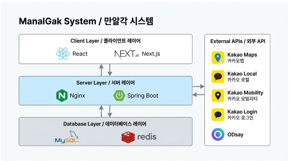 편의성: 복잡한 중간지점 계산과 장소 검색 과정을 원스톱으로 자동화합니다. 사용자는 출발지만 입력하면 계산부터 추천까지 모든 과정이 자동으로 진행됩니다.