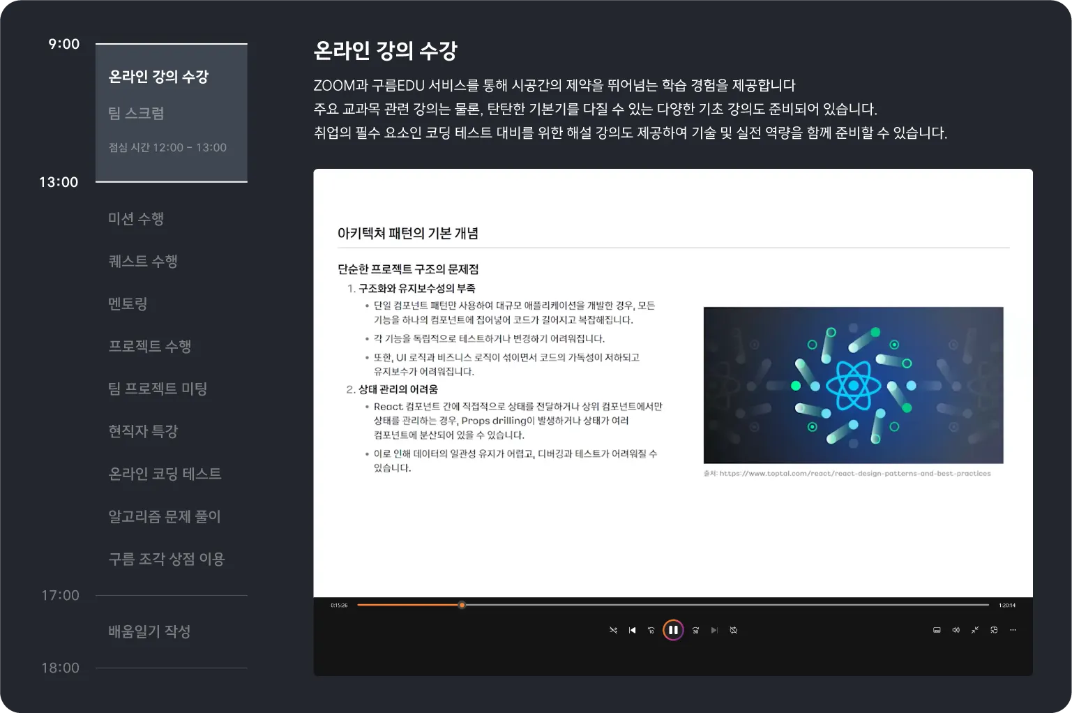 \smaller\React와 최신 클라우드 기술을 활용해 실제 IT 기업이 요구하는 프론트엔드 역량을 탄탄하게 다집니다.