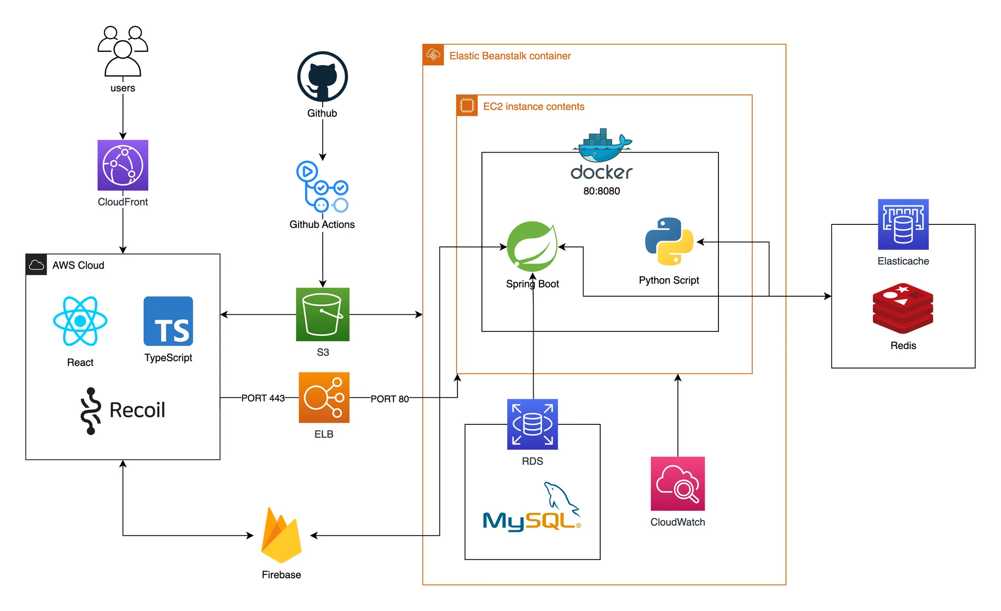 옹기종기 팀에서 개발한 근근근의 아키텍처에요.