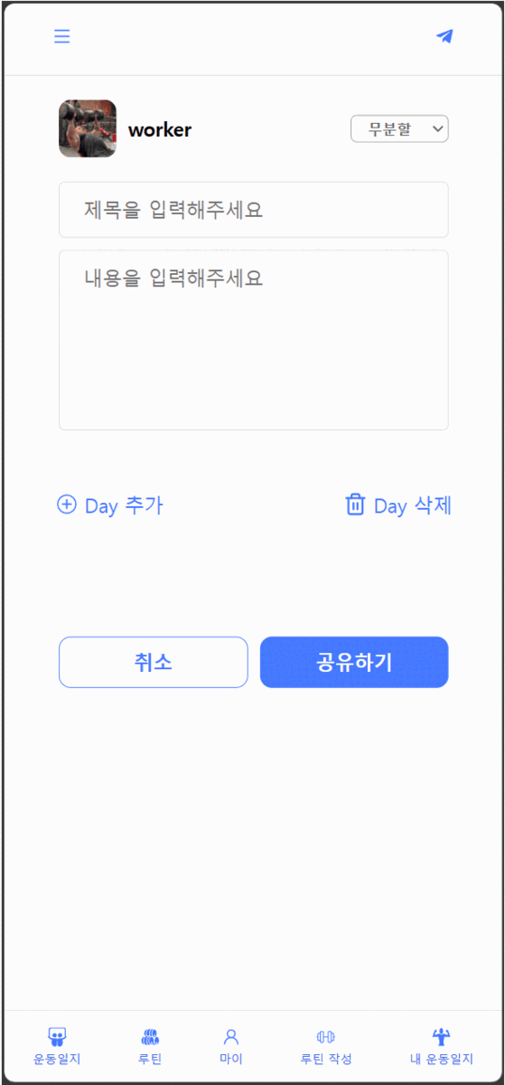 1) 본인의 운동 루틴과 일지를 작성하고 공유할 수 있어요.