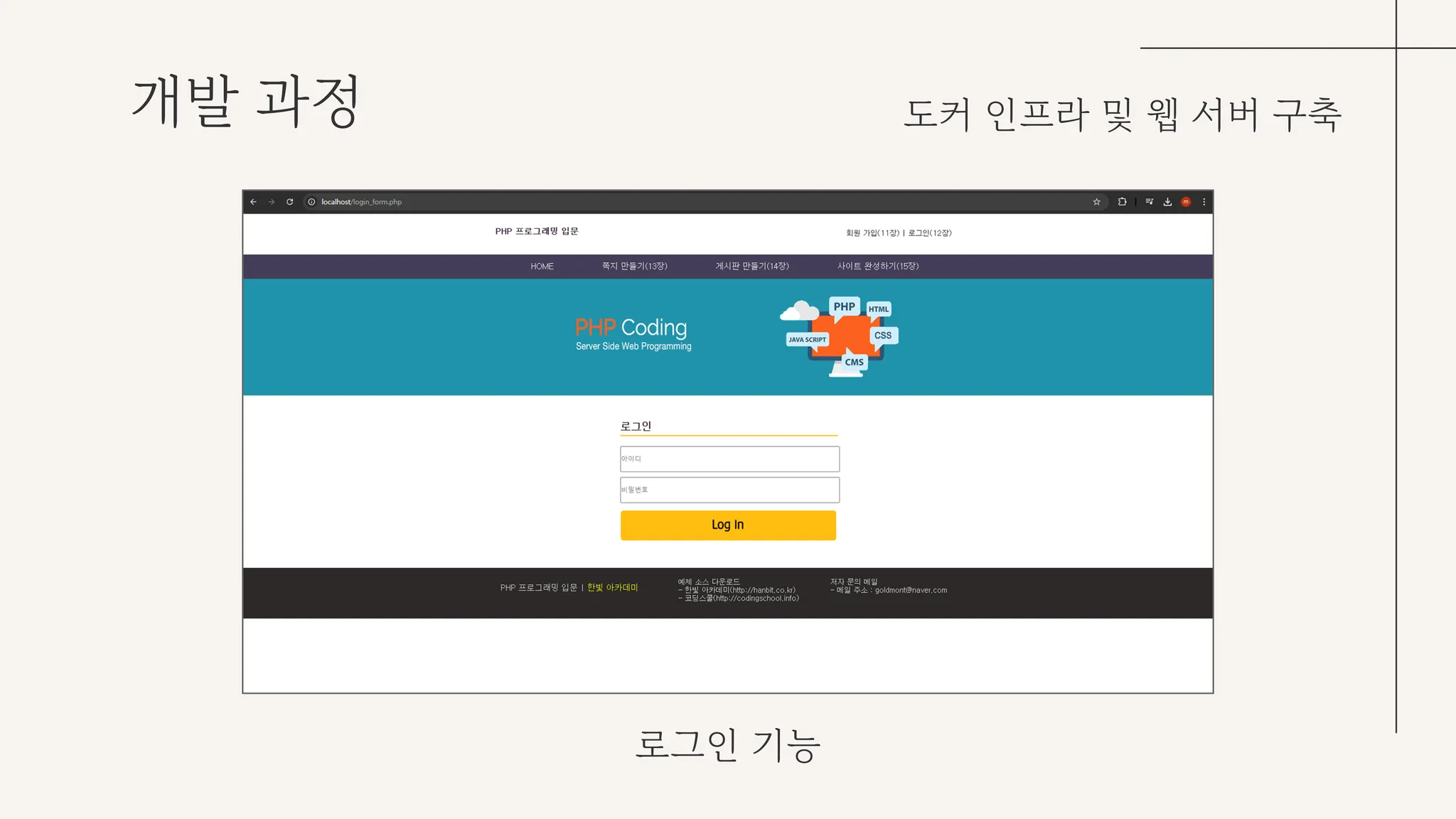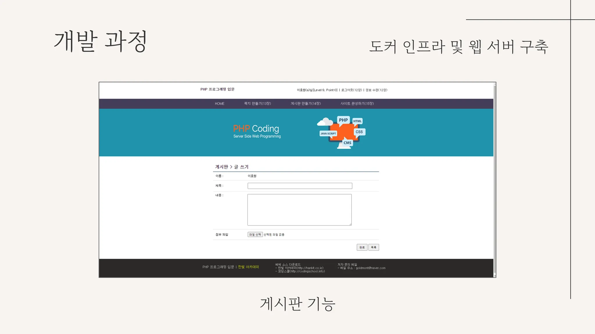 구축한 웹 서버의 기능들로는 로그인 기능, 게시판 기능 등을 구현해 무차별 대입 공격, DOS, SQL injection 등의 공격 유형들을 테스트해 볼 수 있도록 했다.