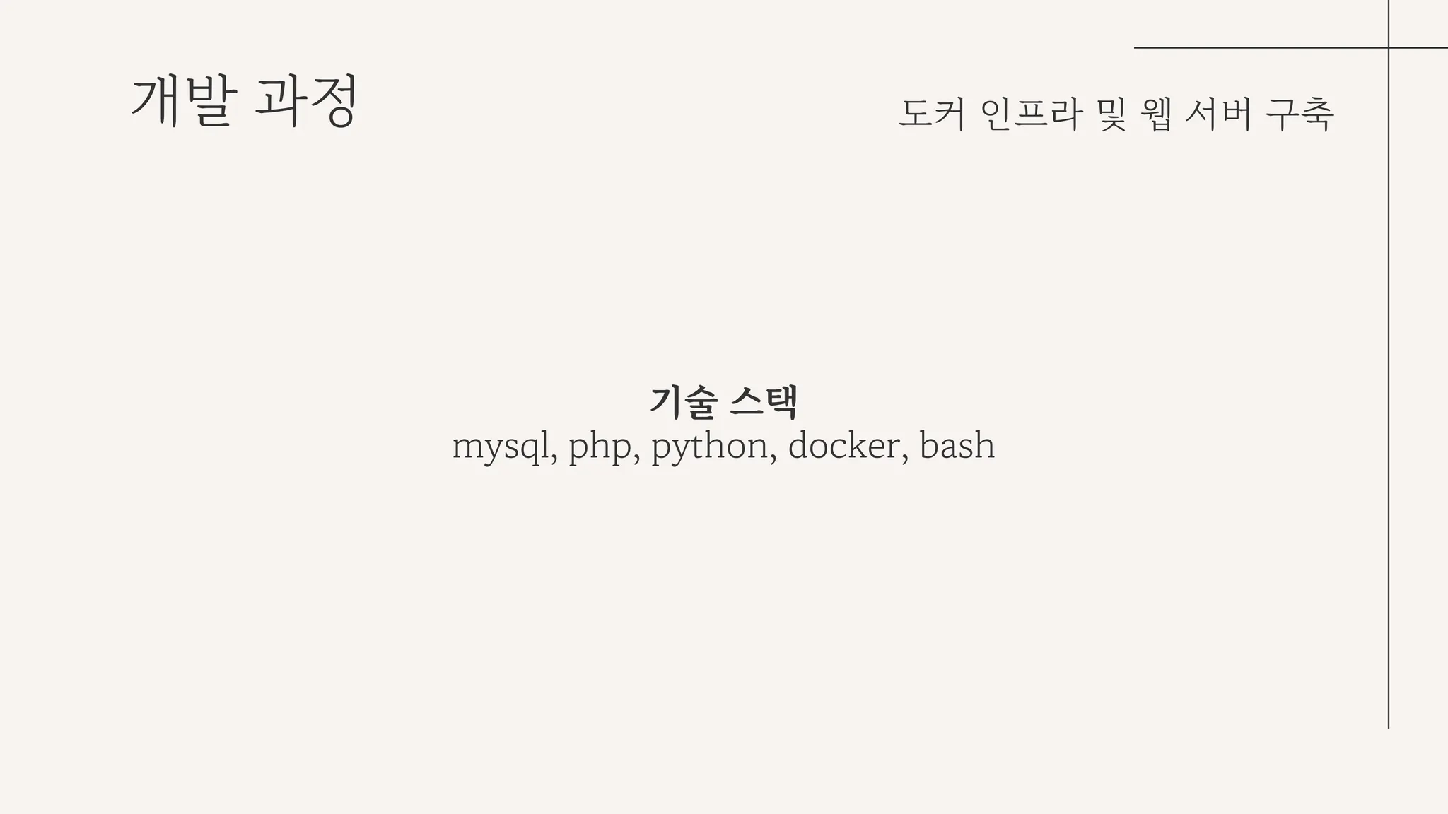 사용한 기술 스택으로는 DB인 mysql, 웹 서버를 구축하기 위한 php, 네트워크 인프라 및 도커 컨테이너를 구축하기 위한 python, docker, bash 등이 있다.
