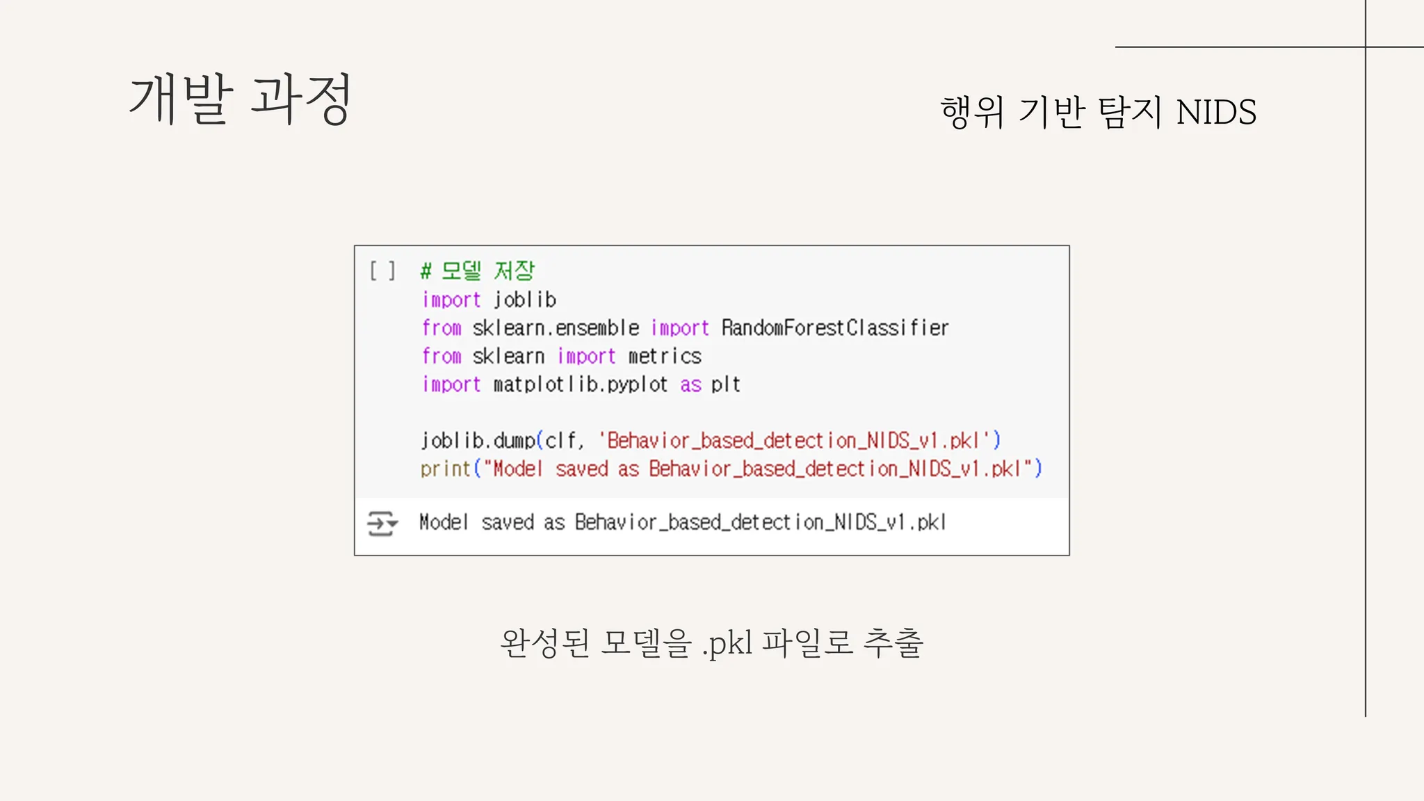 행위 기반 탐지 NIDS 개발의 경우, NSL-KDD 데이터셋을 활용해 머신러닝을 진행하고 악성 사용자의 행위를 탐지할 수 있도록 했다.