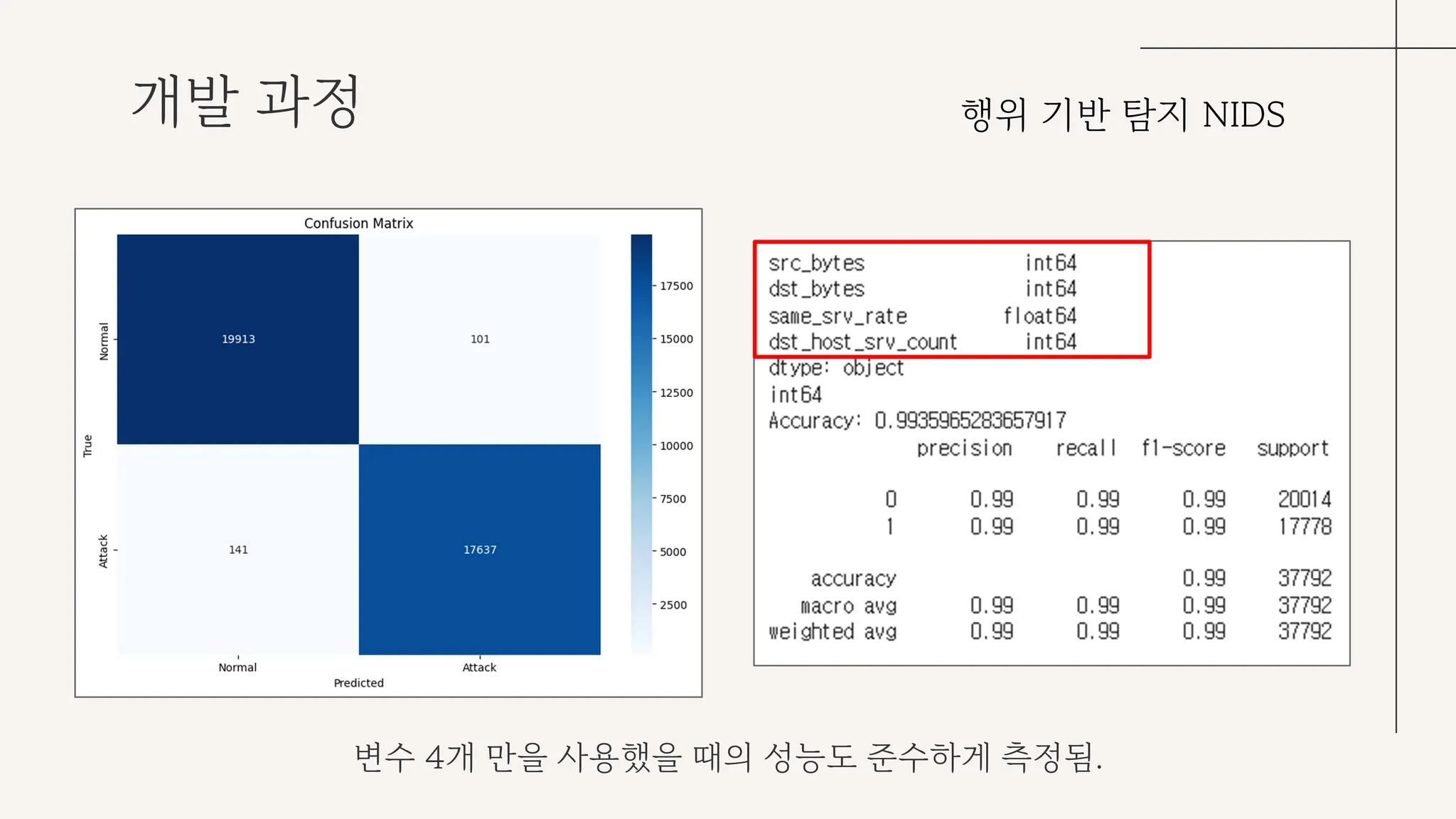 pcap 파일에서 추출한 4개의 변수를 통해 NIDS 모델이 예측을 수행한다.