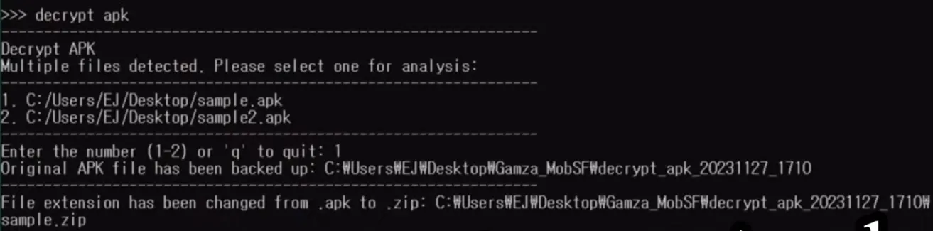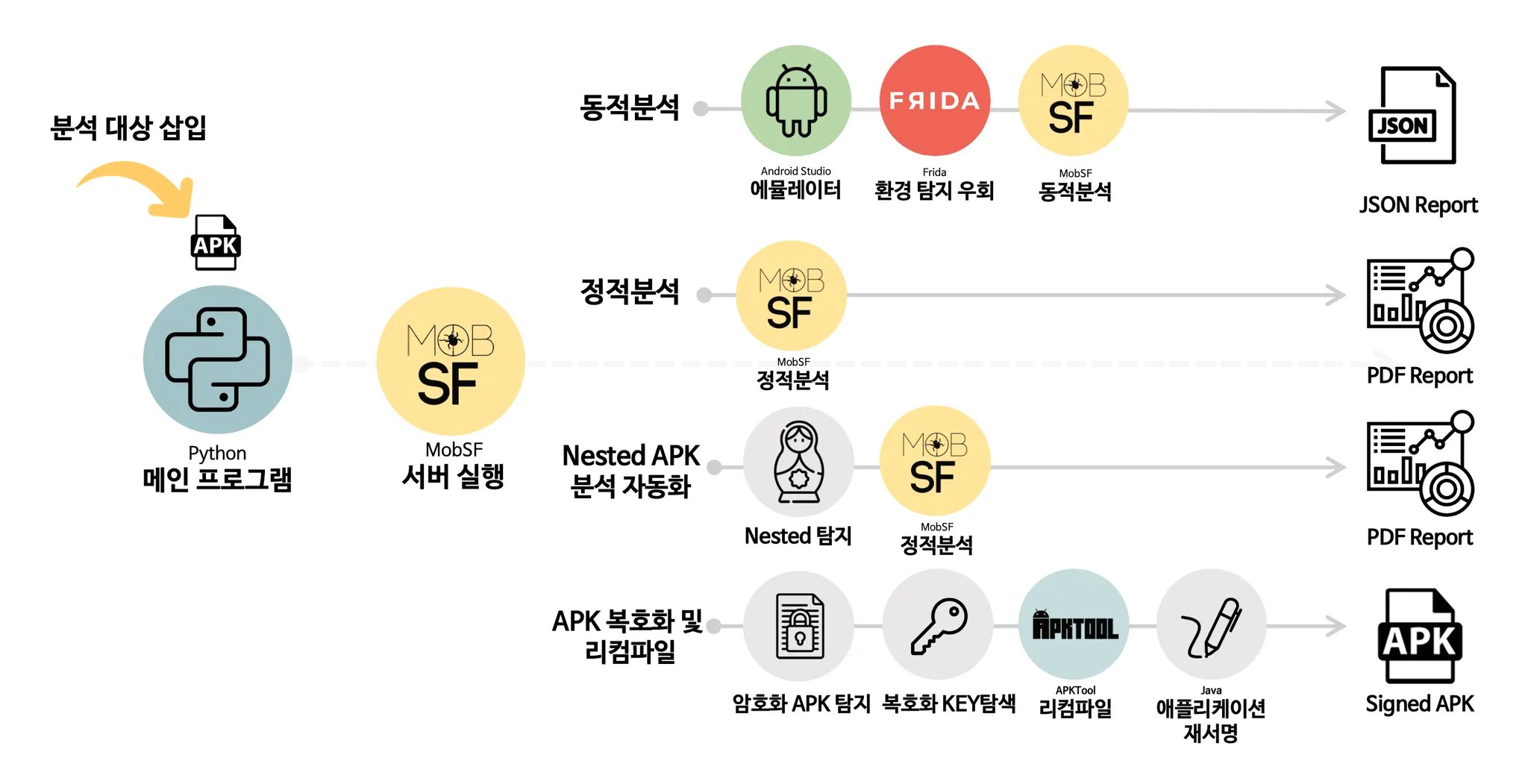 APK 파일을 구성하고 있는 파일을 검사하고 암호화된 dex 파일을 복호화하거나 nested apk 파일을 탐색하기 위해 사용.
